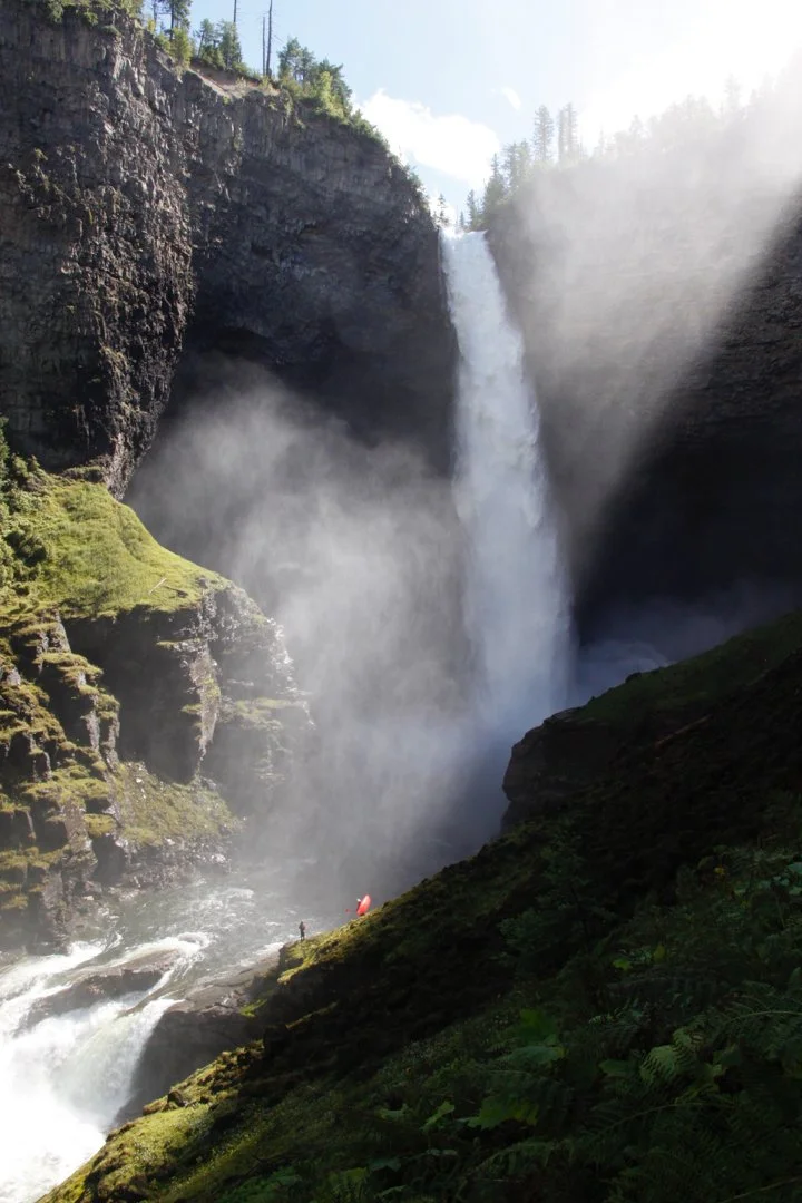Helmcken Falls is the most celebrated: here Murtle River drops 142 meters, creating the fourth highest waterfall in Canada and one of the most spectacular in all of North America... Below the mouth of the Clearwater, the North Thompson is a broad, powerful river. The watersheds of both rivers are the traditional territory of Simpcw, in the Secwepemc Nation"